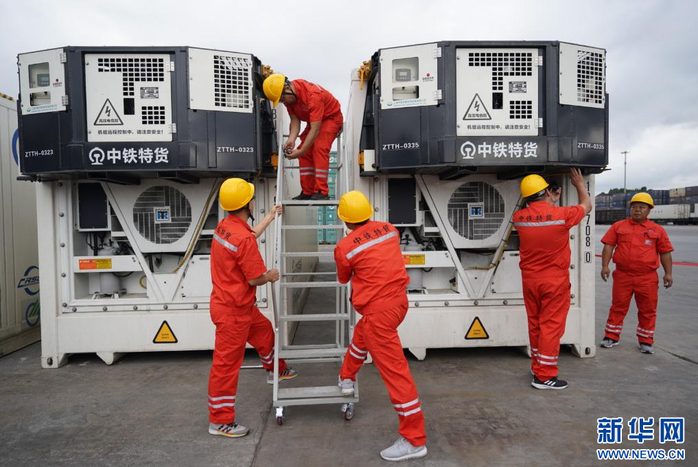9月21日,中铁特货工作人员在昆明王家营西站对冷藏集装箱进行检查。新华社记者 陈欣波 摄