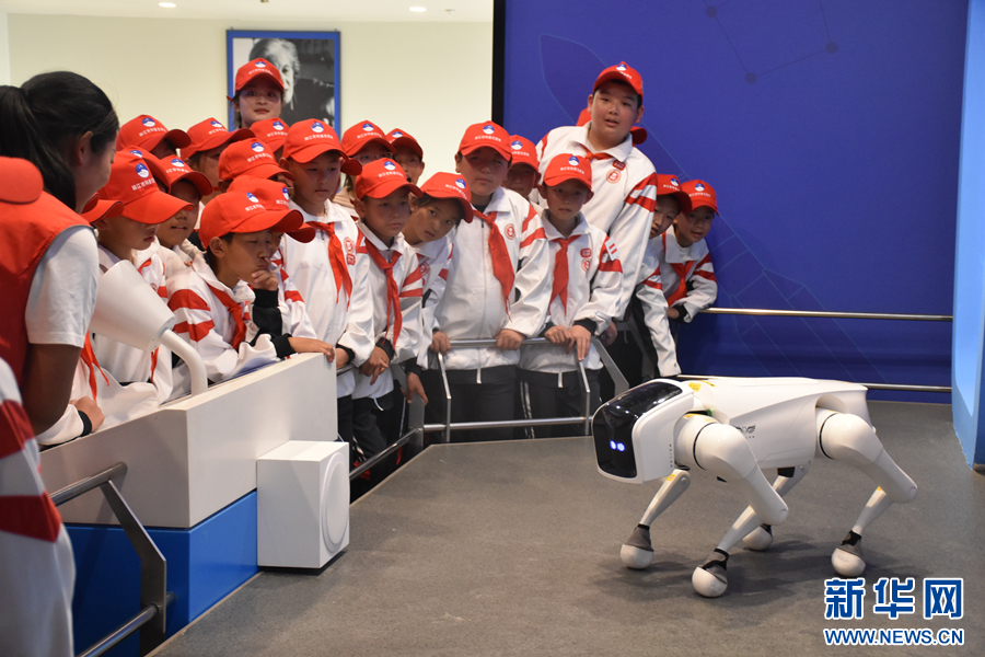 学生与智能机器人互动(9月21日摄)。 新华网发(陈俊佳 摄)