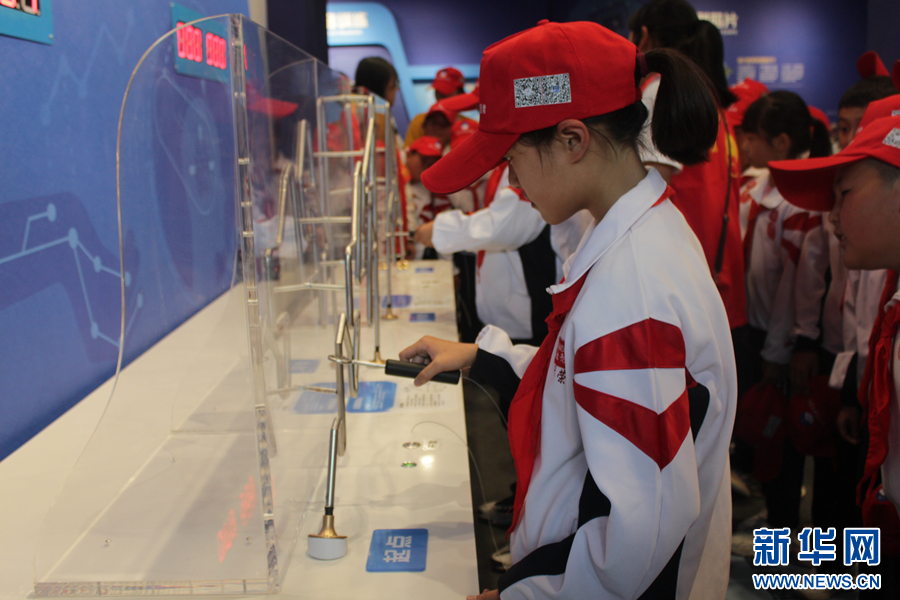 学生在丽江市科技馆体验“极速登雪山”游戏(9月21日摄)。 新华网发(和新兰 摄)