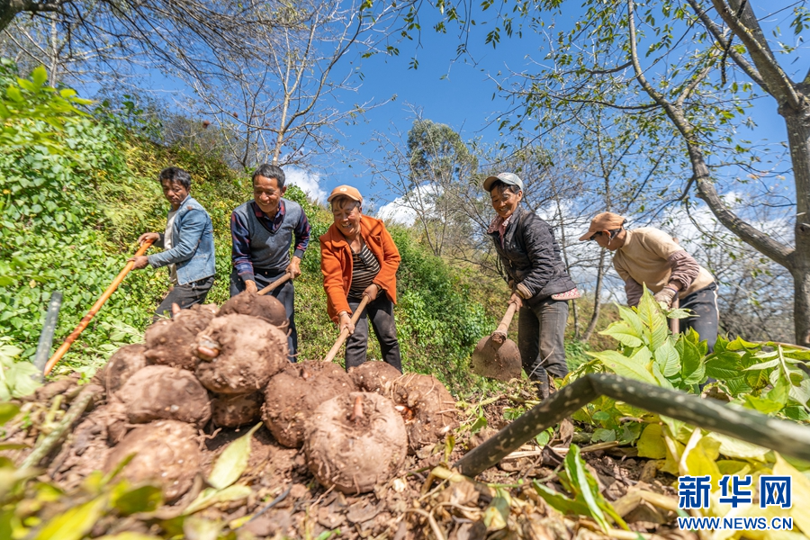 近日,云南省大理白族自治州洱源县西山乡胜利村,农户们刚采收完今年的核桃,又迎来了魔芋的收获季,林上林下,一地双收。