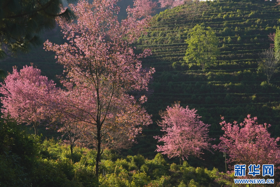 施甸县善洲林场东麓十万余株野樱花如期绽放(12月18日摄)。新华网发(施甸县融媒体中心供图)