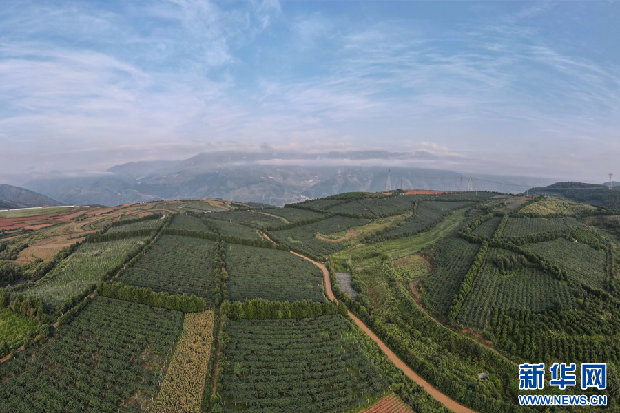 航拍寻甸县凤合镇猕猴桃产业基地(资料图)。新华网发(寻甸县融媒体中心供图)