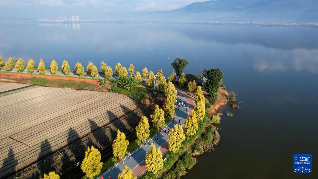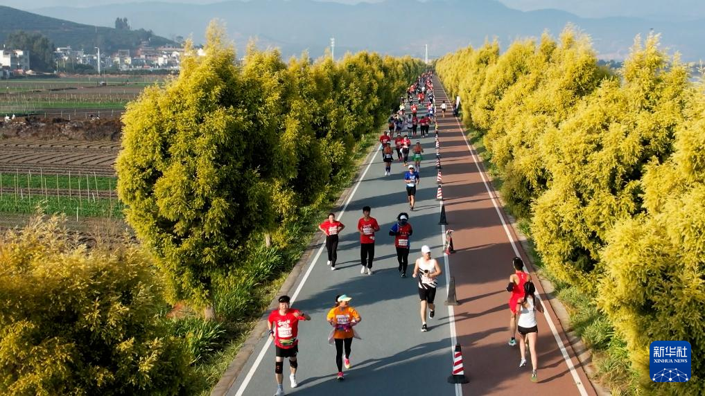 1月1日,云南省红河哈尼族彝族自治州石屏县举办“异马当先·龙飞凤舞迎新春”石屏异龙湖美丽乡村马拉松。约6000名中外跑者齐聚石屏异龙湖畔,参加全程马拉松、半程马拉松、5公里情侣跑、3.5公里亲子跑等比赛项目,用奔跑的方式迎接2024年的第一缕曙光。