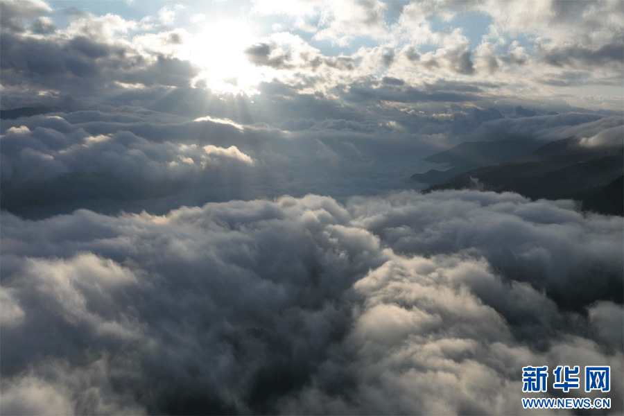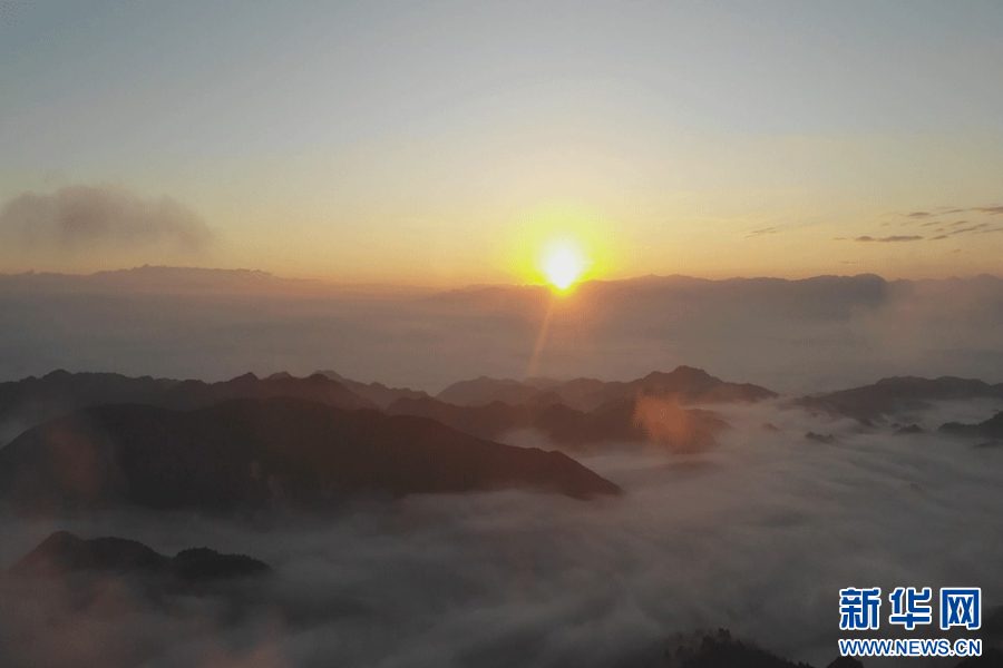 清晨的阳光穿破茫茫云海,为天际和山川铺上一层金辉,交错的光影伴着无边无际的云海,构成了一幅和谐壮美的画面。(完)(周应彪 杨军 普文鸿)