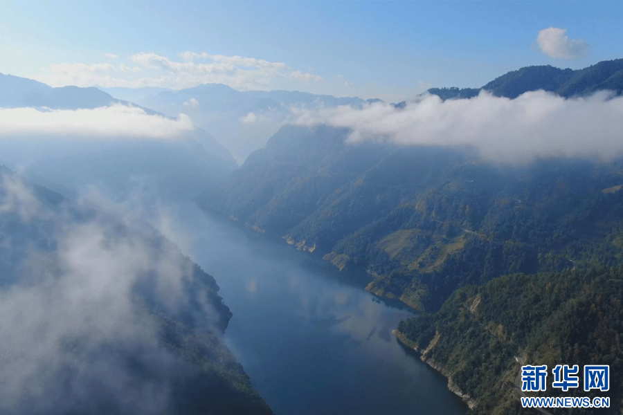 日出前的澜沧江大峡谷云雾缭绕(1月1日摄)。新华网发(昌宁县融媒体中心供图)