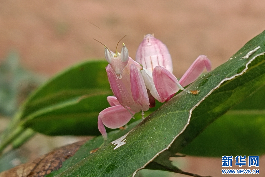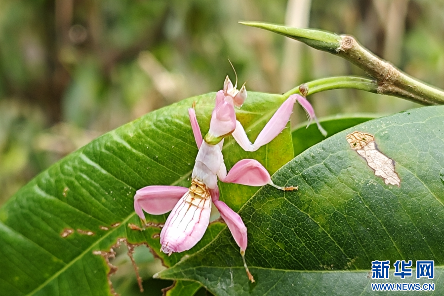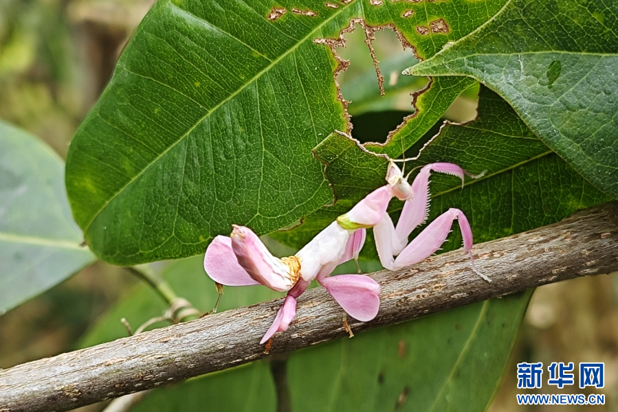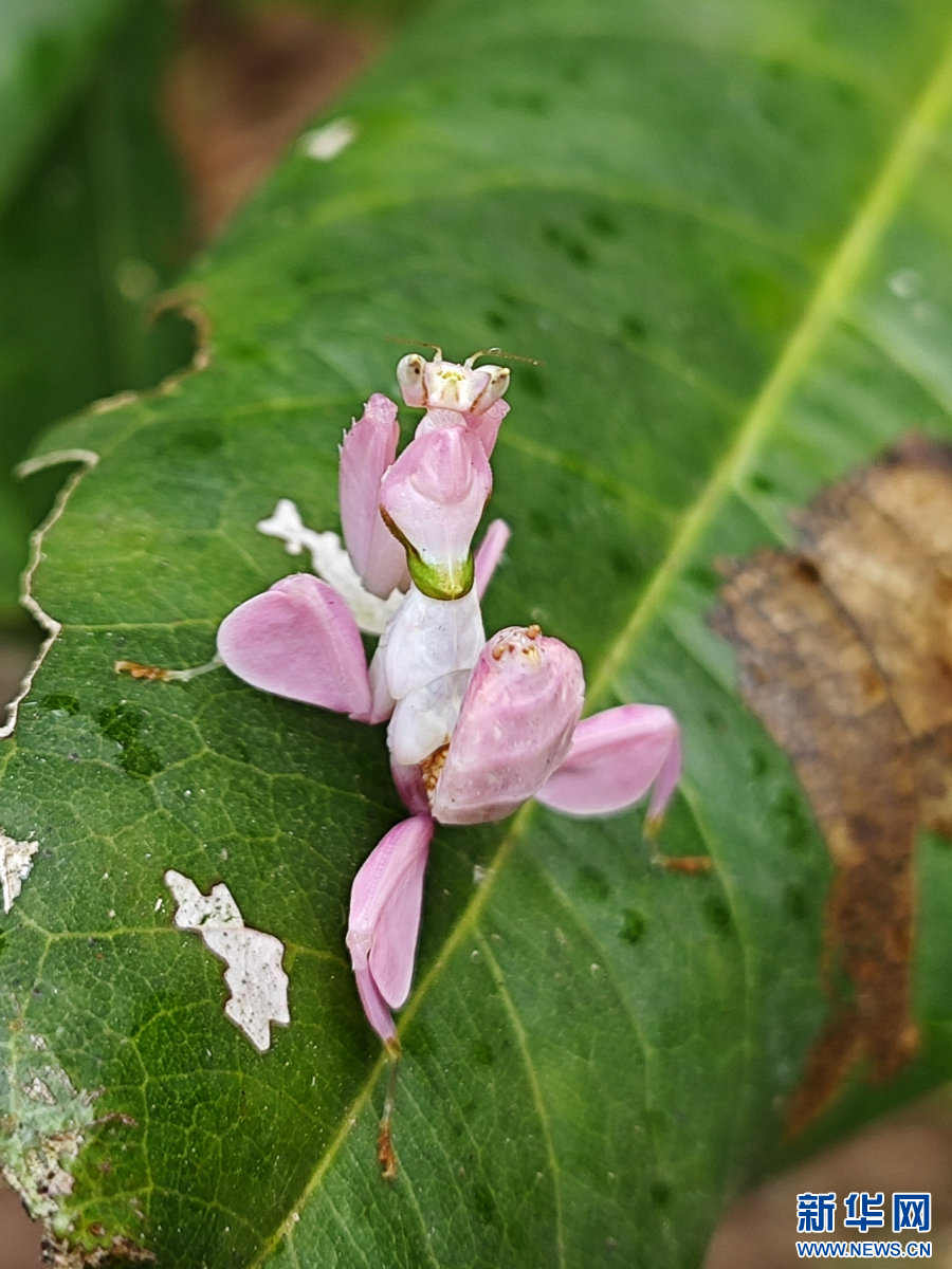 图为在宁洱县黎明乡发现的兰花螳螂(1月15日摄)。新华网发(张兴科 摄)