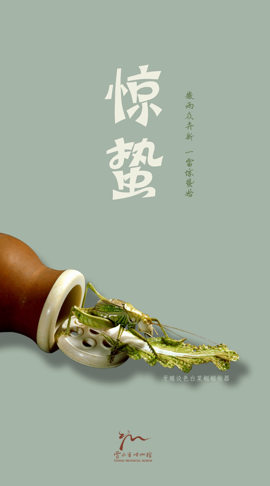 (3)惊蛰——牙雕设色白菜蝈蝈匏器(20世纪)