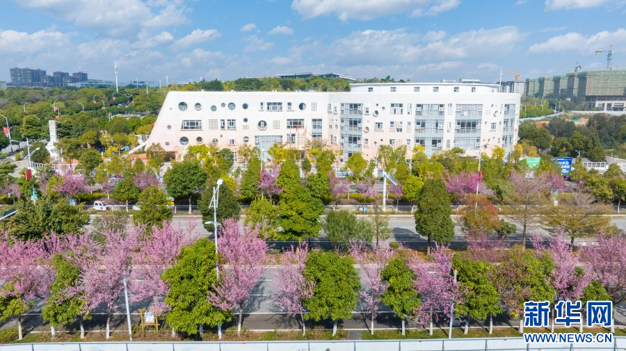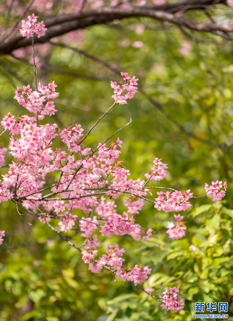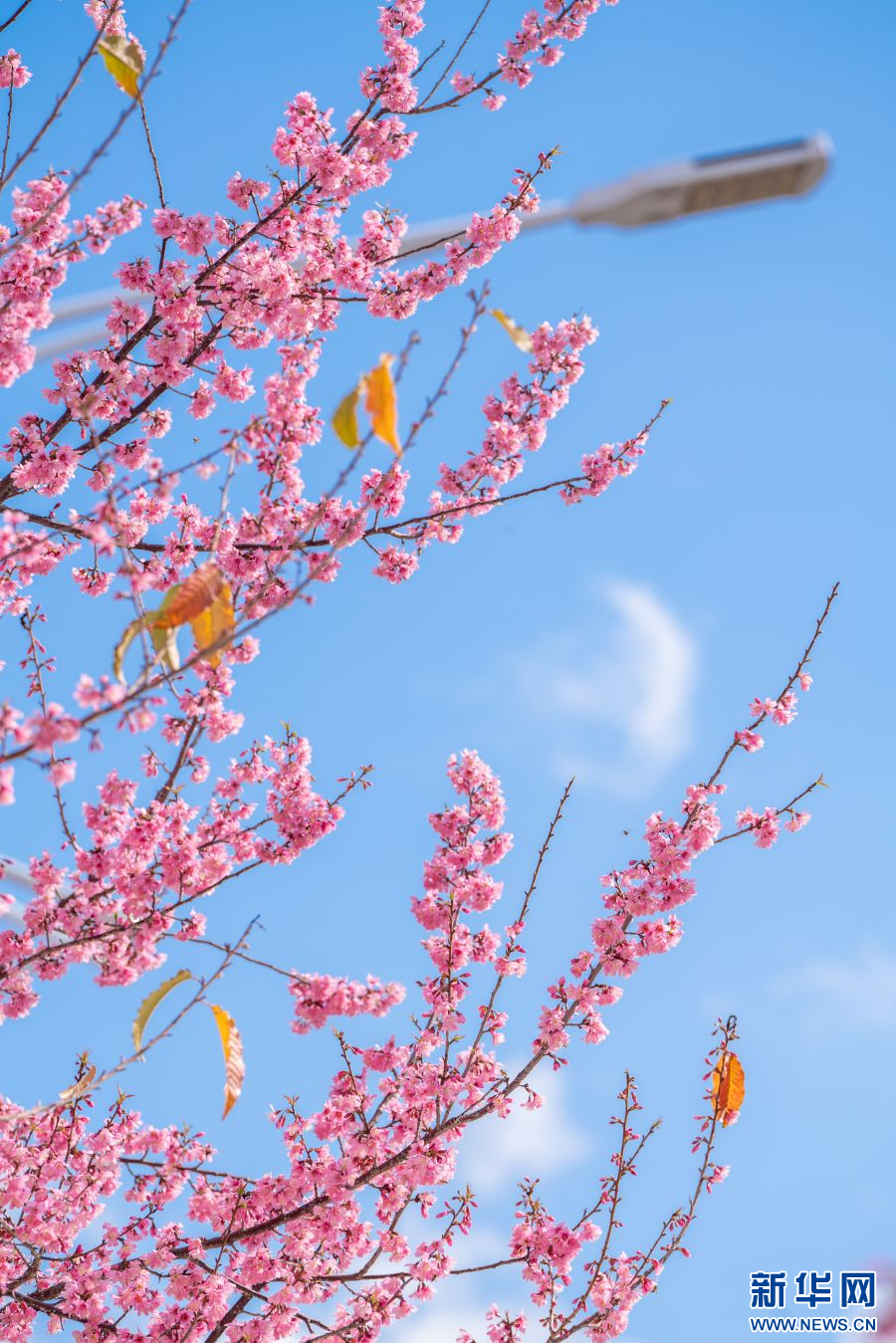 在云南省红河哈尼族彝族自治州蒙自市,冬日暖阳下,樱花盛开,与碧蓝的天空交相辉映,美不胜收。(马秋菊 李星 杨子傲 佘卓瑾)