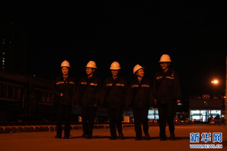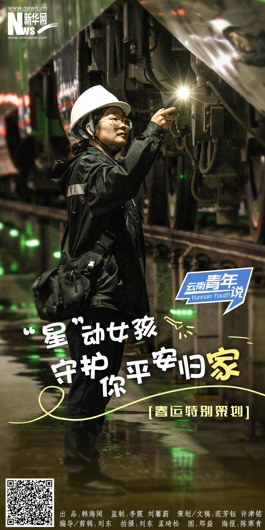 女孩们在检查列车(1月17日摄)。新华网发(郑益 摄)