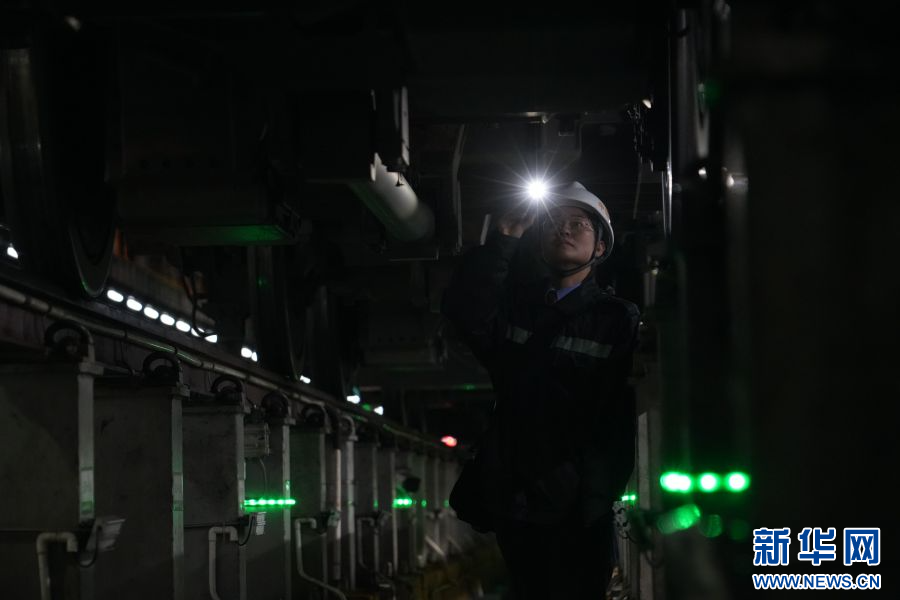 殷玥在检查列车(1月17日摄)。新华网发(郑益 摄)