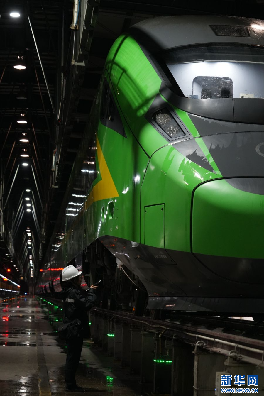 检查列车(1月17日摄)。新华网发(郑益 摄)