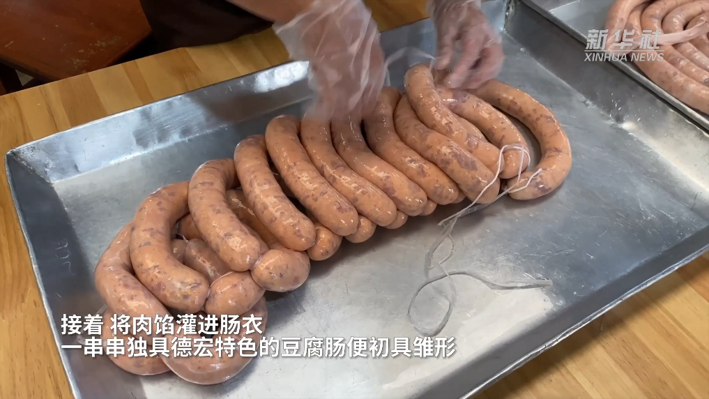 除常见的川味腊肠和广味腊肠外,在云南省德宏州芒市勐戛镇新区,当地居民更中意的腊肠是在肉馅中加入豆腐与苤菜根等香料所制成的豆腐肠。