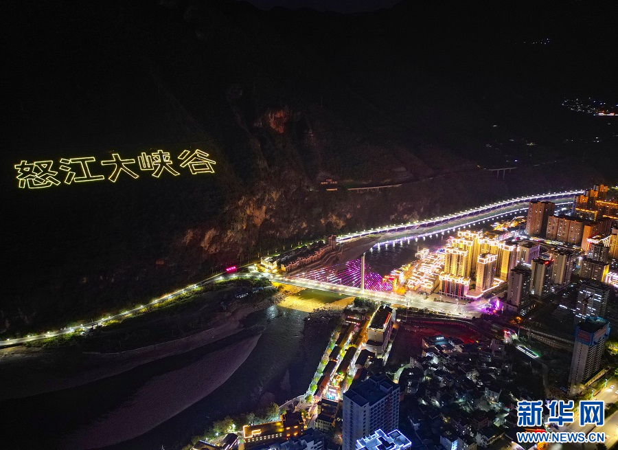 近日,摄影爱好者用无人机记录下云南省怒江傈僳族自治州泸水市主城区的冬日夜景。夜幕之下,各色闪亮的霓虹灯让整个城市流光溢彩。(完)(邵维岑 郭康 杨荣辉)