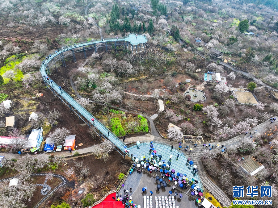 梅林上方的玻璃栈道(2月2日摄)。新华网发(刘正凡 摄)