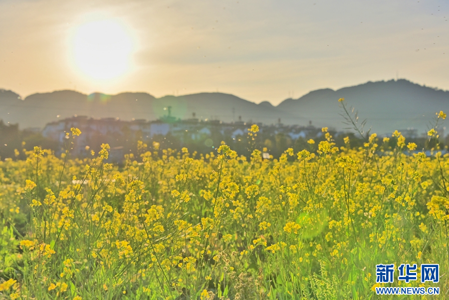 夕阳余晖下的油菜花(2月16日摄)。新华网发(吴再忠 摄)