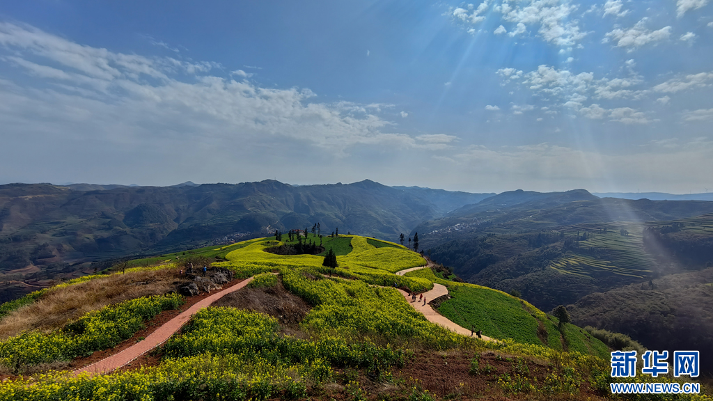 罗平县马街镇阿市村的油菜花(2月12日摄)。新华网发(刘起 摄)