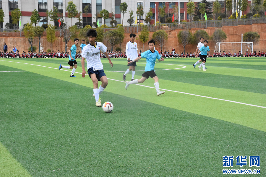 2024年丽江市青少年(学生)足球联赛揭幕战(4月1日摄)。新华网发(和润仙 摄)