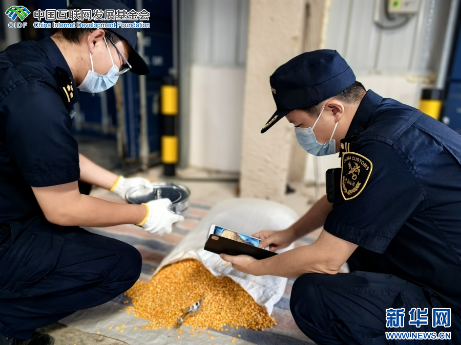 海关工作人员正在对入场货物进行查验(资料图)。新华网发(勐腊海关 供图)