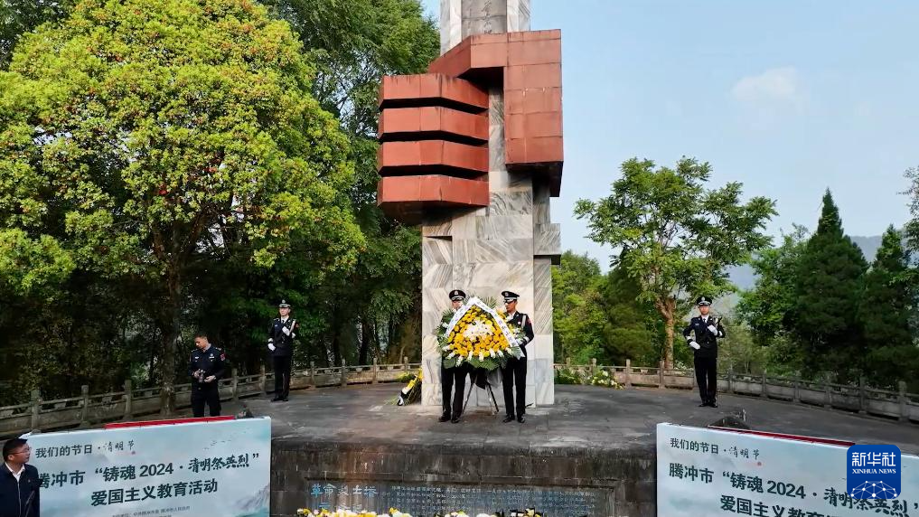 4月3日,云南省腾冲市“铸魂2024·清明祭英烈”爱国主义教育活动,在腾冲市革命烈士陵园举行。活动现场庄严肃穆,腾冲干部群众、师生们在革命烈士纪念碑前唱国歌,向烈士纪念碑敬献花篮,并向烈士默哀,行鞠躬礼,献上鲜花表达哀思。