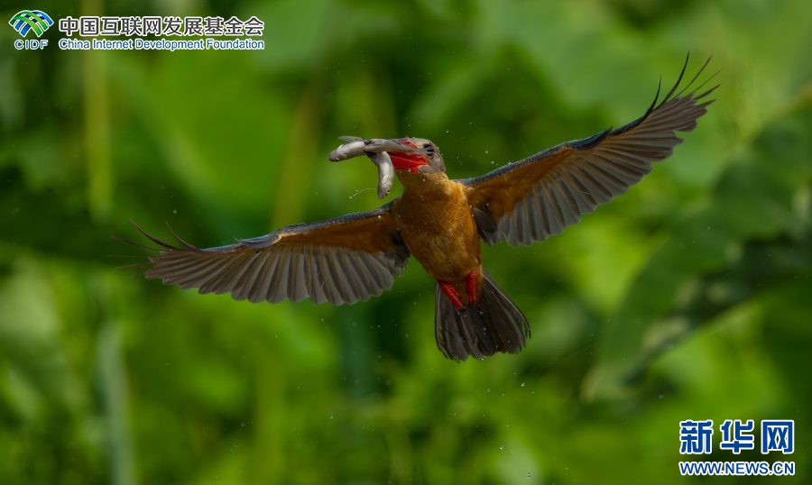 飞翔的鹳嘴翡翠(3月31日摄)。新华网发(高峰 摄)