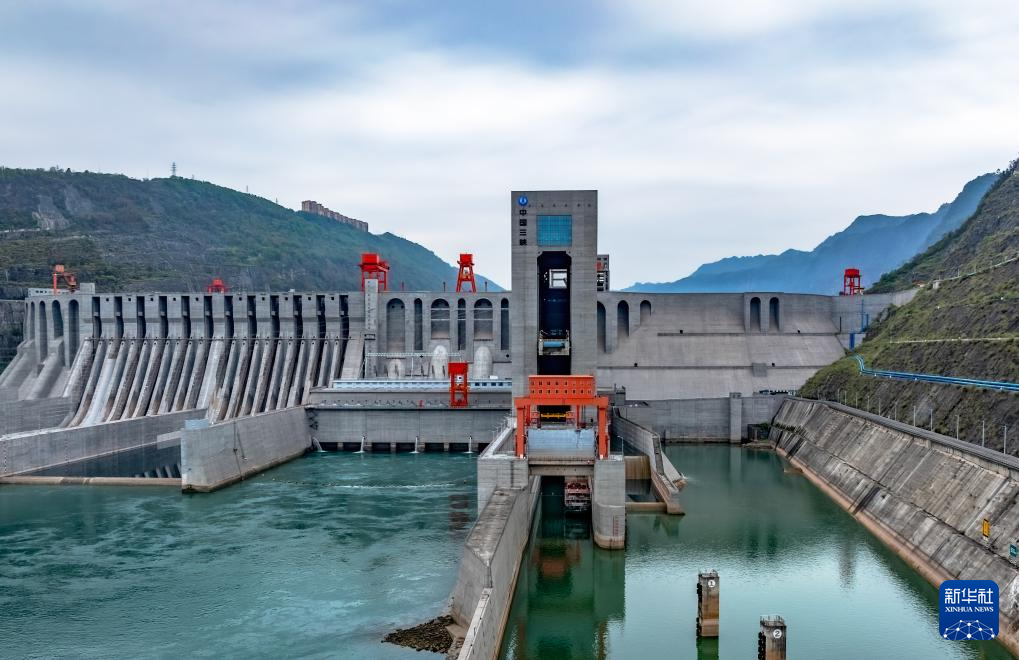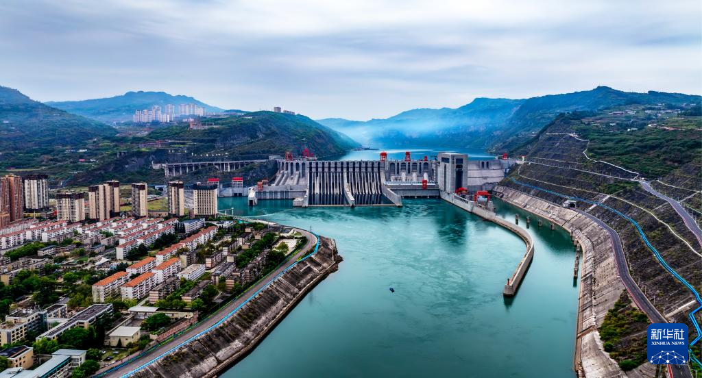 4月20日拍摄的位于云南省昭通市水富市、四川省宜宾市叙州区交界处的向家坝水电站(无人机照片)。新华社发(曾三东 摄)