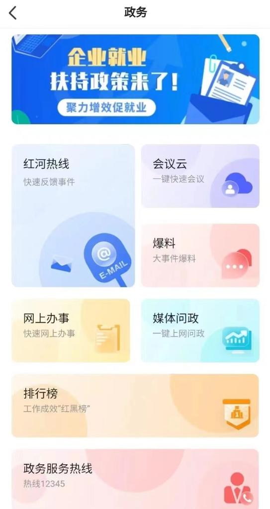 用户通过“政务”版块中的“网上办事”“媒体问政”“排行版”等栏目,可以直接向相关部门反映合理合法的诉求,及时了解政府工作动态;“服务”版块则为用户提供就业、就医、就学等方面的咨询服务,以及公积金和社保查询、交通违法查询、生活缴费等便民服务;在“商城”版块,“红河融媒严选”将向用户提供特色农产品在线购买服务,并开设房产、商圈等行业频道,实现信息发布、活动策划、品牌推广等功能;“嗨拍”版块将为用户打造兴趣圈子、社交圈子;“活动”版块将通过读书会、亲子游等活动,在寓教于乐中发挥媒体的社会教育宣传功能。