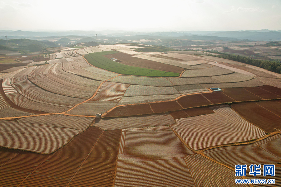 云南省曲靖市沾益区炎方乡拍摄的红土地(5月3日摄)。新华网发(杨俊鹏 摄)