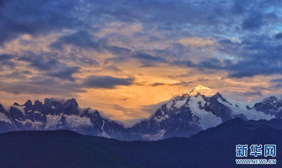 梅里雪山的日照金山奇观(资料图)。新华网发(李春雷 摄)