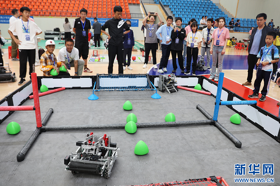 活动现场,无人机综合应用接力挑战、极限冰壶科技挑战赛等比赛项目如火如荼进行,多个学校学生积极组队参赛。随着倒计时,学生们争分夺秒,操纵手中遥控,控制机器实行抓取、行进等一系列动作,集中展示科技素养。