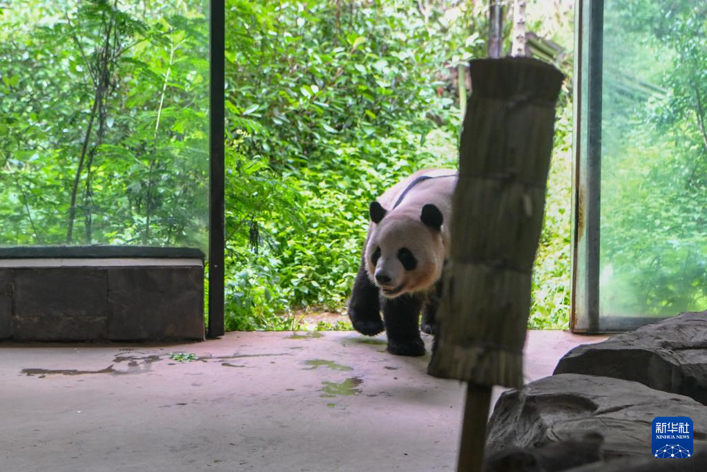 8月2日,大熊猫“珍多”进入活动内场。新华社记者 彭奕凯 摄