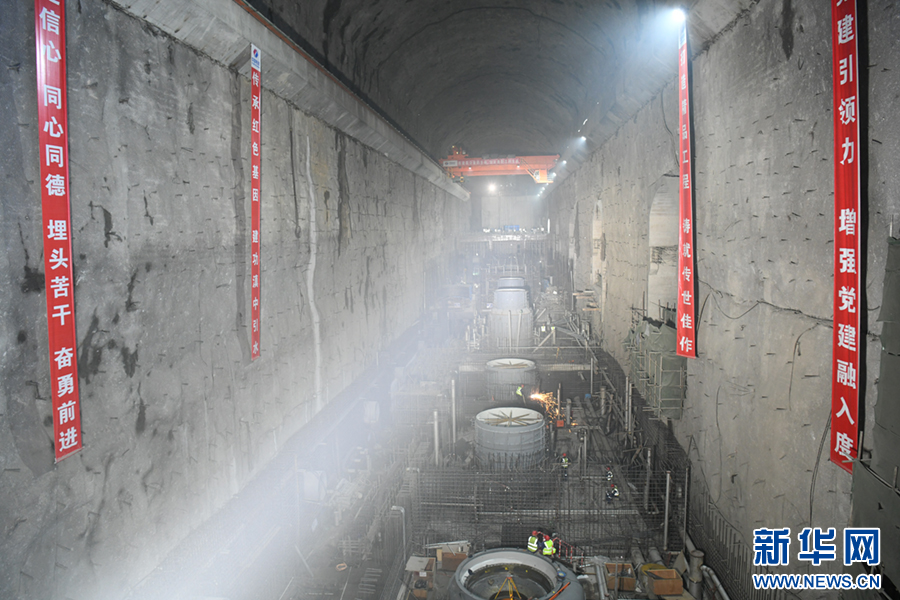 滇中引水石鼓水源工程地下泵房最大埋深333米,开挖尺寸为217米(长)×23.4米(宽)×48米(高)。滇中引水石鼓水源工程是滇中引水工程的两大主体工程之一,1号2号机组的顺利封顶为后续水泵机组设备安装及调试奠定了坚实基础。新华网发(赵庆祖 摄)