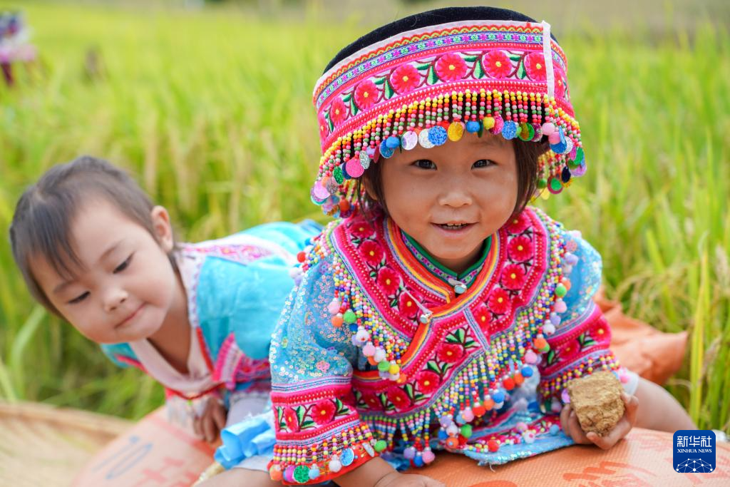 近日,位于云南省红河哈尼族彝族自治州个旧市卡房镇的旱地优质稻种植示范区迎来收获季。当地开展民俗表演、割谷比赛等活动庆祝丰收。