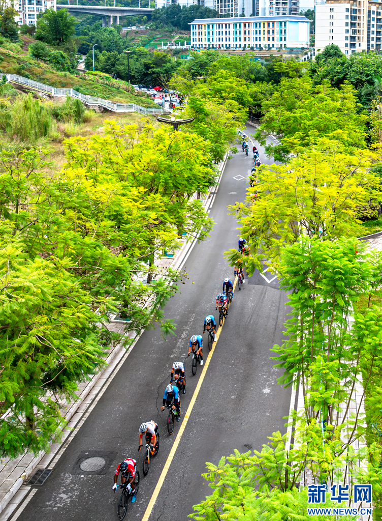 2024环昭通国际公路自行车赛(绥江—水富赛段)比赛现场(11月8日摄)。新华网发(曾三东 摄)