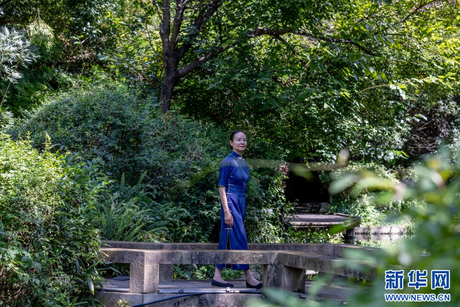 邵筱萍在莲花池公园内。资料图