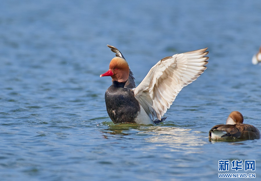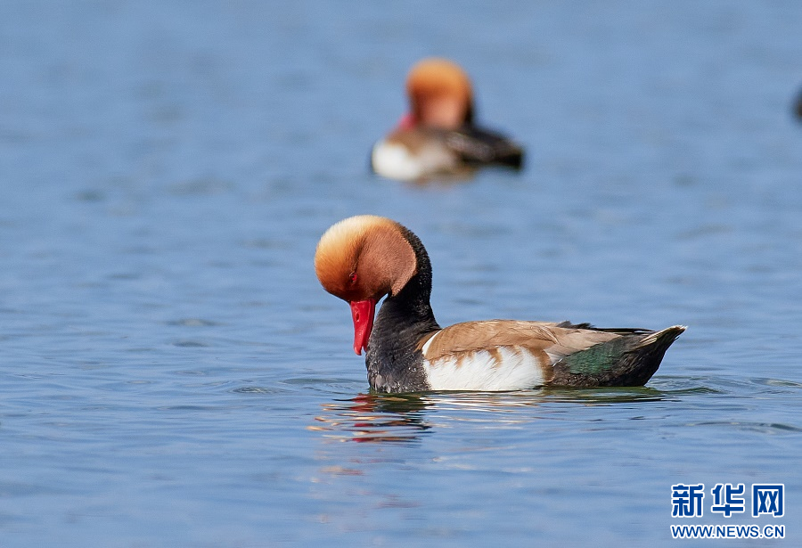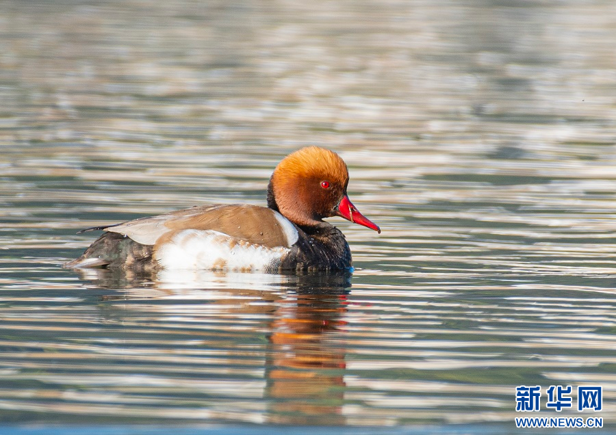赤嘴潜鸭(视频截图)。新华网发(郭康 摄)