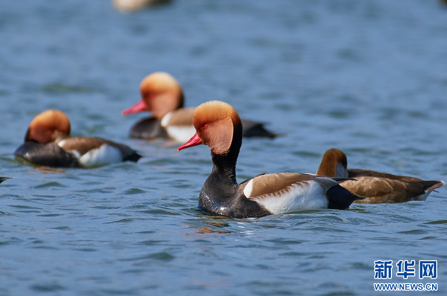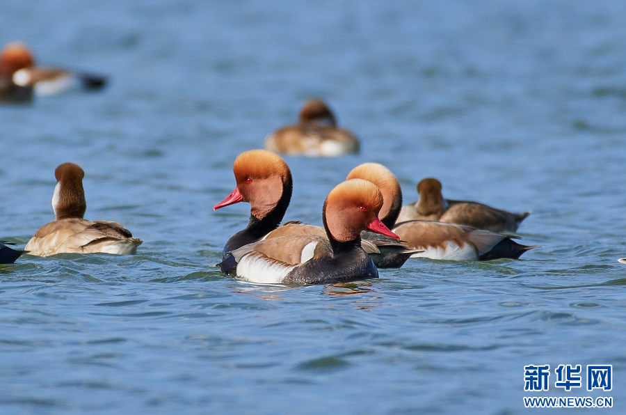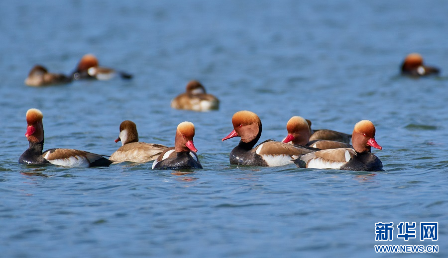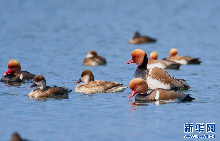 成群的赤嘴潜鸭(视频截图)。新华网发(郭康 摄)