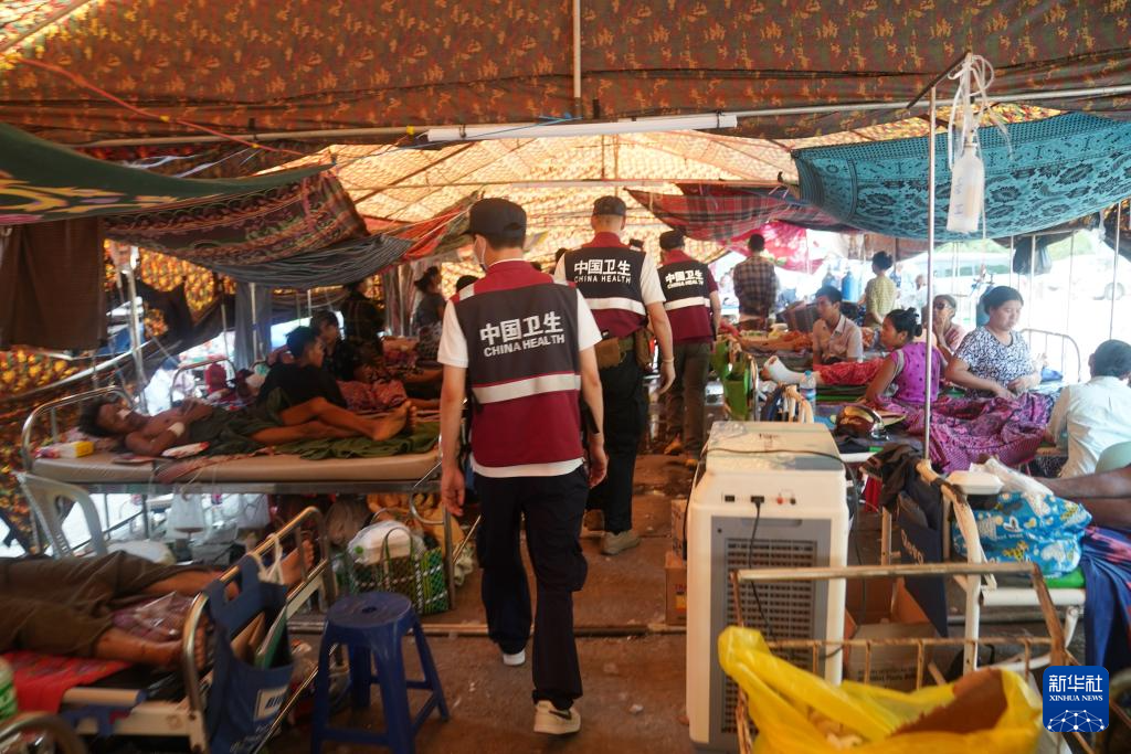 3月31日,中国云南救援医疗队的卫生专家在缅甸首都内比都的千床医院查看。新华社发(王申摄)