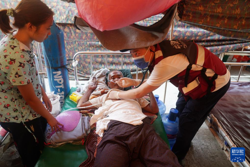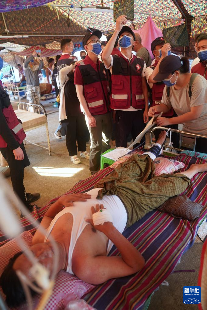 3月31日,在缅甸首都内比都的千床医院,中国云南救援医疗队的卫生专家评估地震伤员病情。新华社发(王申摄)