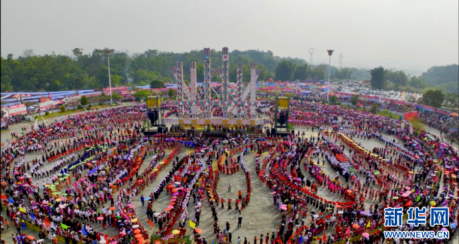 目瑙纵歌节现场节日氛围浓烈(2024年2月24日摄)。新华网发(德宏州融媒体中心供图)