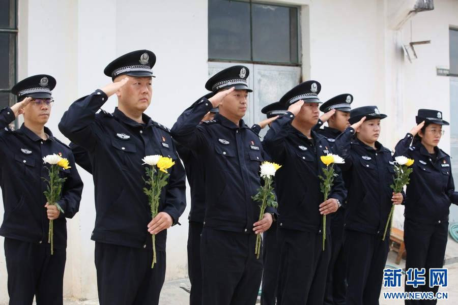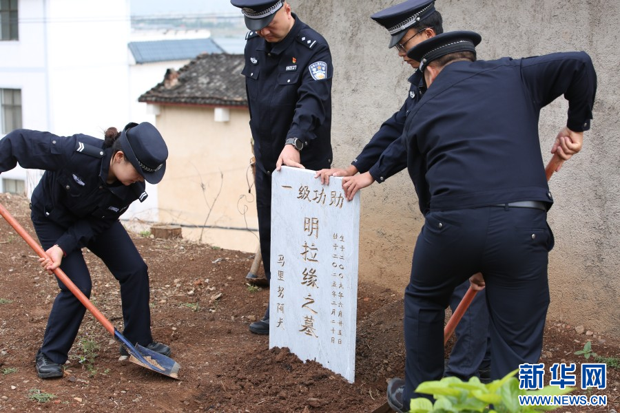 民警为警犬明拉缘立碑(2025年4月16日摄)。新华网发(保山市公安局供图)