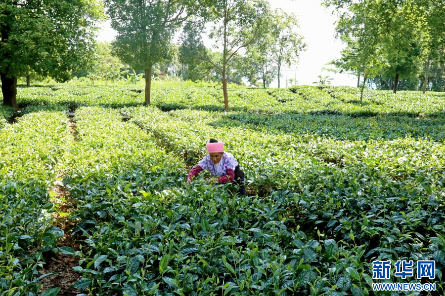 茶农正在采摘春茶(4月8日摄)。新华网发(梁颖 摄)