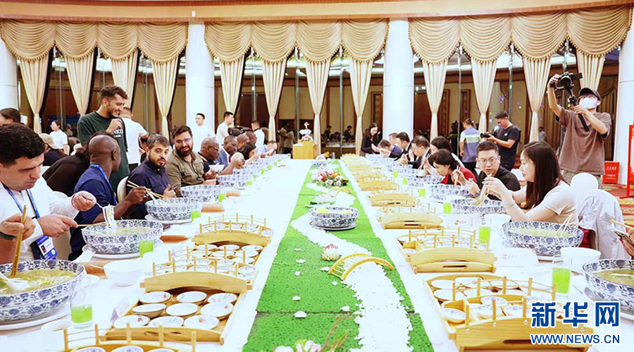 嘉宾品尝过桥米线(9月7日摄)。新华网发(韩文萍 摄)