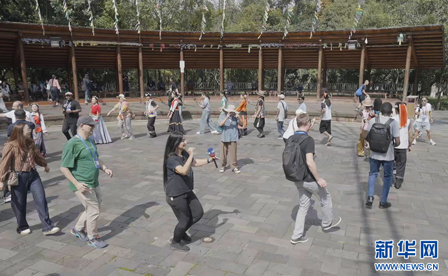 嘉宾们一起“打跳”(9月8日摄)。新华网发(唐诺 摄)