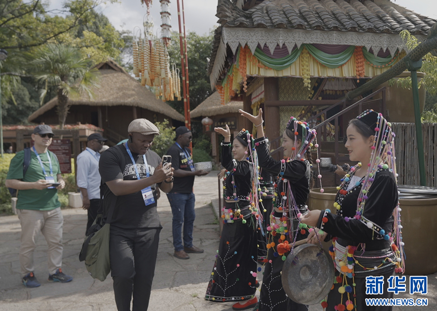 参访期间,阿昌族、景颇族、德昂族、傣族、傈僳族、拉祜族等云南少数民族的服饰、建筑、舞蹈等文化元素都受到外国嘉宾的欢迎和喜爱,大家纷纷拿起手机记录,有的还与家人朋友线上分享。
