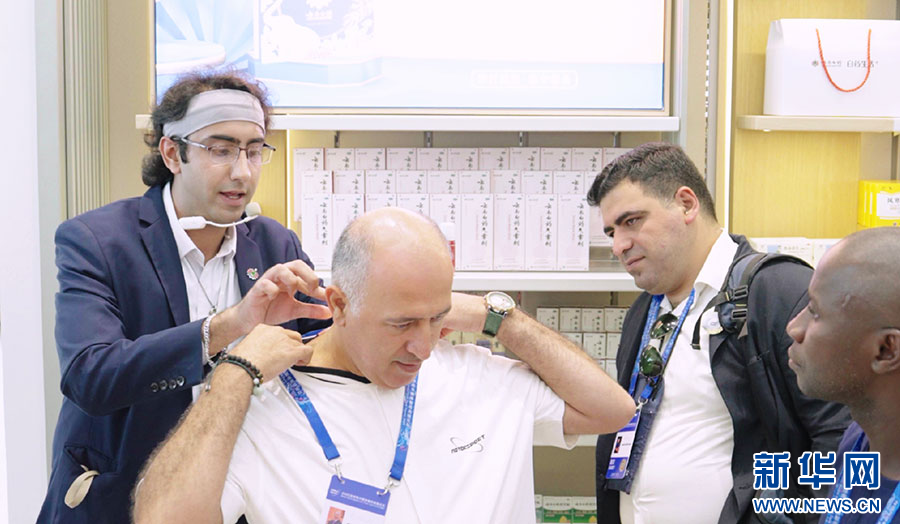 嘉宾现场体验中医药文化(9月7日摄)。新华网发(张汉超 摄)