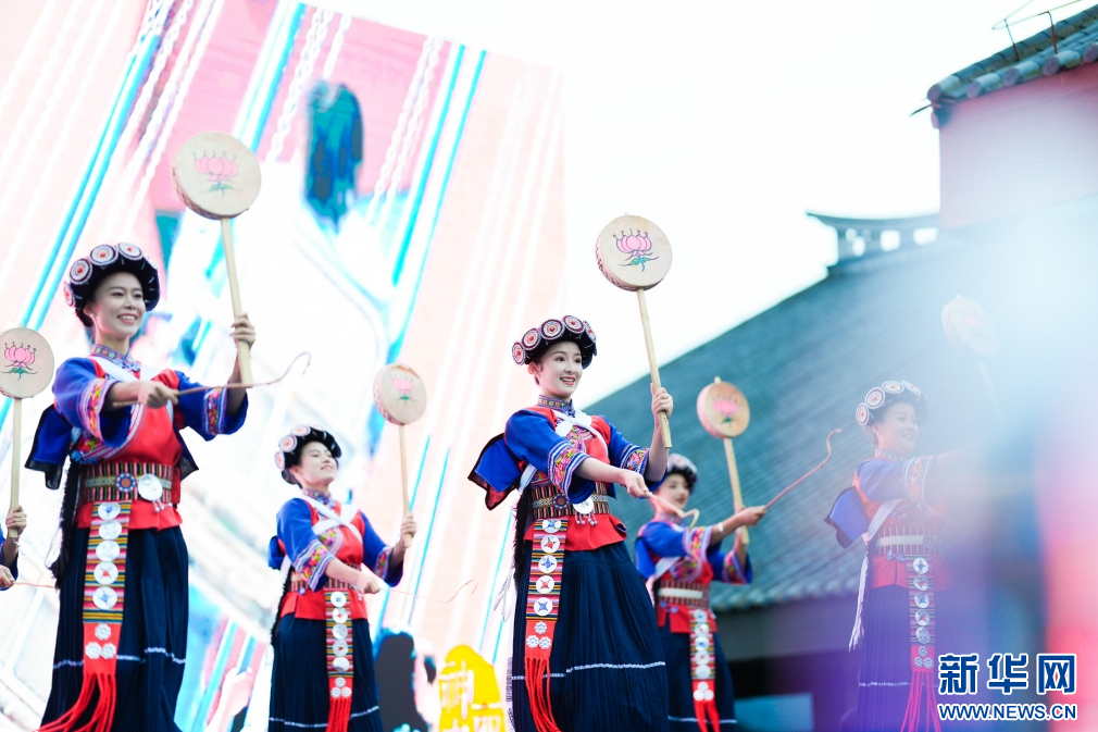 沙龙现场上演纳西族勒巴舞表演(9月8日摄)。新华网发(徐俊 摄)