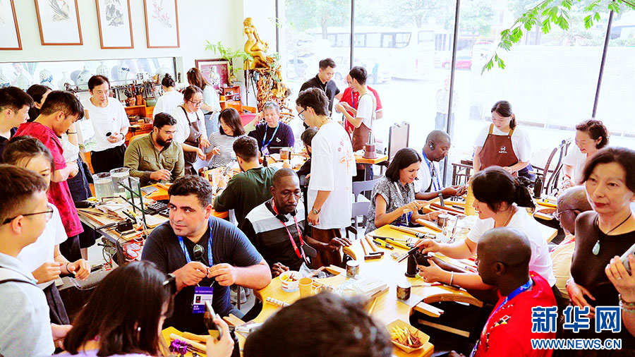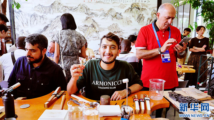 嘉宾“花式”体验中华传统文化(9月8日摄)。新华网发(张汉超 摄)