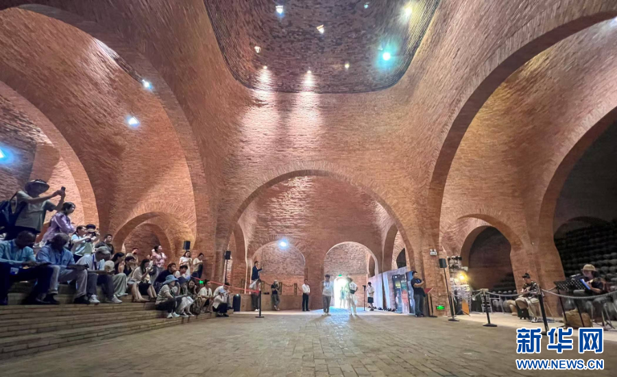 嘉宾在红砖建筑内欣赏当地音乐表演(9月8日摄)。新华网发(杨桢宇 摄)