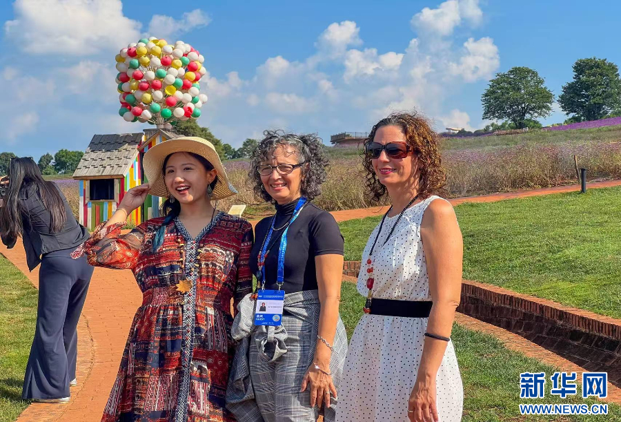嘉宾在东风韵花海“打卡”(9月8日摄)。新华网发(杨桢宇 摄)