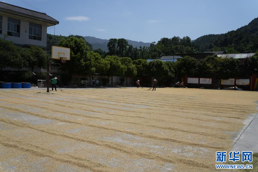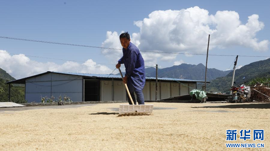 在大关县,村民在晾晒稻谷(摄于9月9日)。新华网发(杨全伟 摄)